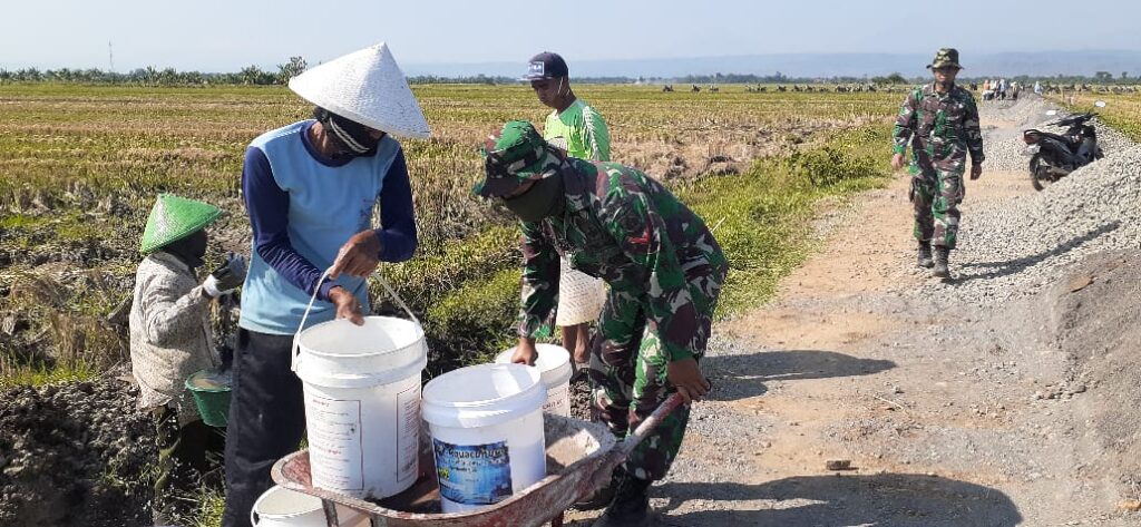 “Dalam pelaksanaan Pra TMMD ini bersama Masyarakat bahu membahu mengambil air untuk menyiapkan kelancaran pelaksanaan TMMD walaupun dengan peralatan seadanya,”.Ujar Kopada Sudadi.