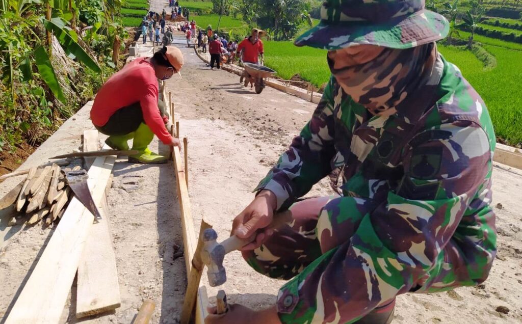 KORDANEWS – Pekerjaan pemasangan mal atau papan cor untuk pengecoran jalan dikerjakan oleh personil TNI dan masyarakat dalam program Pra TMMD Reguler ke-109 Kodim 0727/Karanganyar, di Desa Jatiwarno, Kecamatan Jatipuro, Kabupaten Karanganyar, Jawa Tengah.