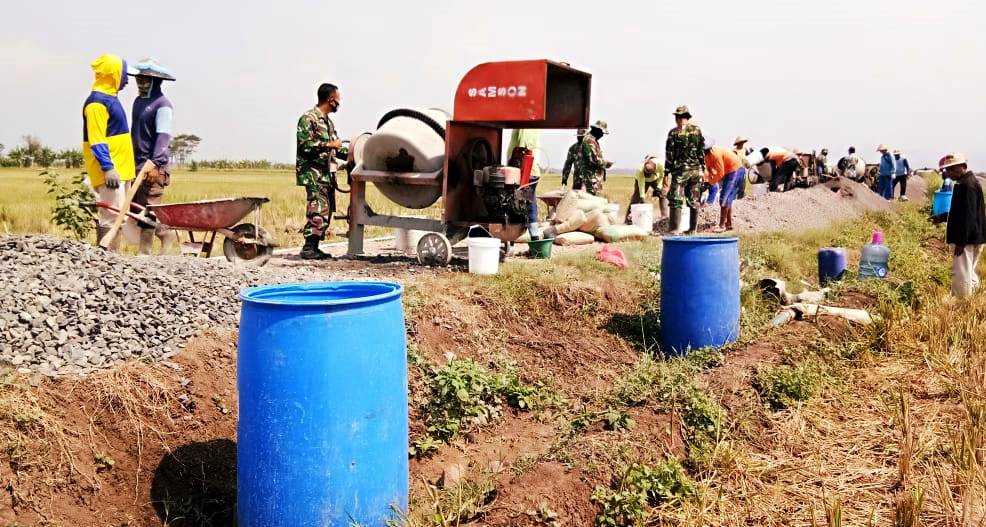 Pra TMMD Kodim 0715/Kendal Bersama Warga Tetap Semangat Bekerja Dalam Cuaca Panas