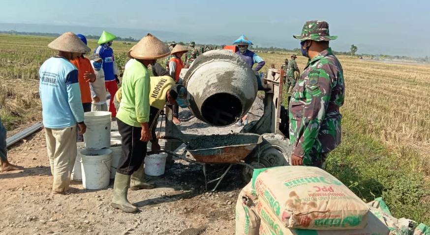 Pengecoran jalan terus dikebut. Meskipun lokasinya terletak di antara areal persawahan dan panas terik matahari terasa membakar kulit, namun hal itu tidak menyurutkan niat anggota TNI dan masyarakat untuk terus bekerja. Terik matahari dan udara panas menjadi tantangan yang harus ditaklukkan. Bunyi mesin molen yang menggema ibarat lantunan lagu yang akan memberikan semangat di antara keringat yang bercucuran.