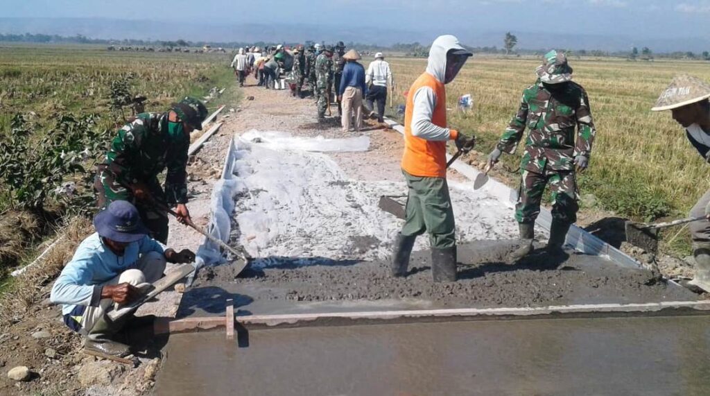 Dalam pelaksanaan kegiatan fisik tersebut, panas bukanlah menjadikan suatu halangan bagi para anggota Satgas TMMD dan masyarakat dalam mengerjakan pengecoran jalan pada TMMD ke-109 tahun 2020 di Wilayah Kodim 0715/Kendal.