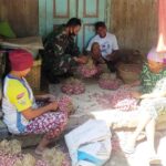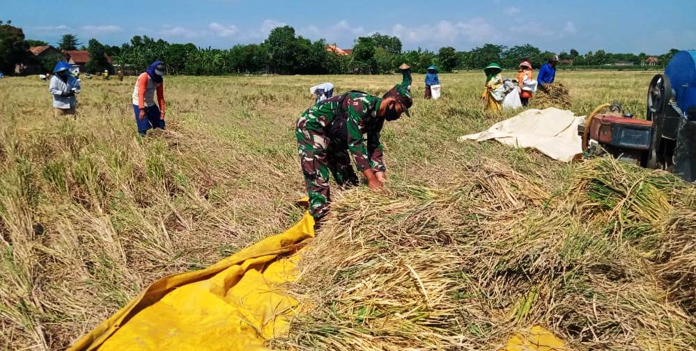 Anggota satgas TMMD 109 ini terlihat semangat tak menegenal lelah membantu memanen dan merontokan padi sawah milik salah satu warga desa Sendang Kulon.