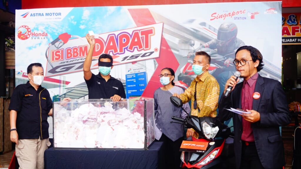 Valentinus David memilih satu kupon dengan mata tertutup dari 4.965 kupon yang diundi dan terpilih satu kupon atas nama Sobandija yang beralamat di Jl. Puncak Sekuning. Pengundian ini disiarkan secara live di Intagram @hondasumsel.
