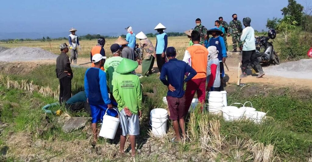 Serka Nasikun Koramil 05/Cepiring mengatakan, dalam pelaksanaan TMMD Reguler ke-109 terkendala air, untuk itu dirinya bersama warga rela antri mengambil air di bibir sawah yang tidak jauh dari lokasi TMMD walaupun dengan peralatan seadanya.
