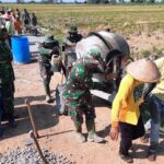 “Kami bersama masyarakat di lokasi pembangunan rabat beton bahu-membahu mengangkat material. Dengan berbagai alat, ada yang memikul besi di bahunya, mendorong gerobak, bahkan ada pula yang mencari air dan itu kami lakukan bersama-sama masyarakat sekitar,” kata Kopda Sudadi anggota Satgas TMMD Reguler