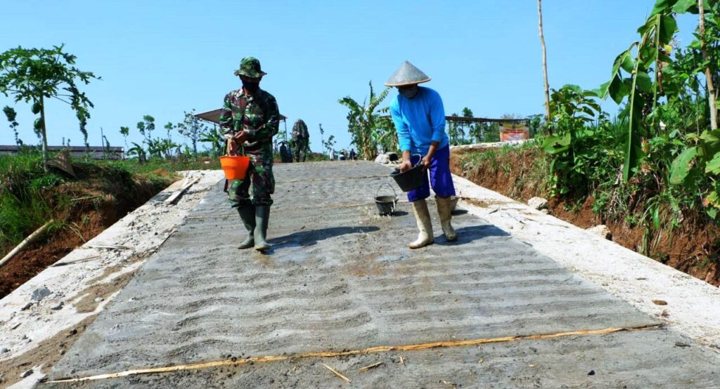 Jaga Kualitas Hasil Cor Jalan TMMD, Penyiraman Air Dilakukan Rutin
