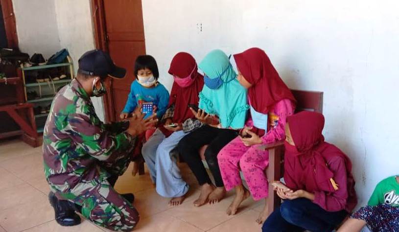 Hal itu ditunjukkan oleh Sertu Sumaryo, Anggota Kodim 0727 Karanganyar, salah satu anggota Satgas TMMD, di sela- sela waktu istirahat siang kerja TMMD, digunaka untuk menjalin keakraban agar lebih dekat dengan anak-anak dengan menggunakan sarana Handphone.