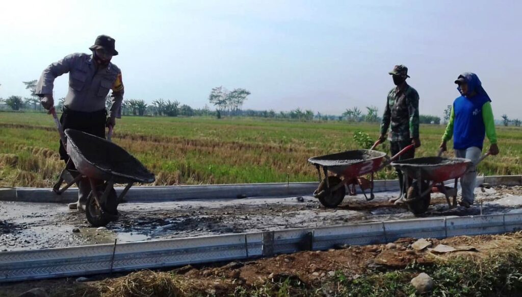 Bertempat di jalan Dusun Pening Desa setempat Bhabinkamtibmas bersama aparat TNI dan masyarakat melaksanakan kerja bakti berupa membuat betonisasi sepanjang 1.200 m, adapun pengerjaan tersebut dilakukan secara gotong royong.
