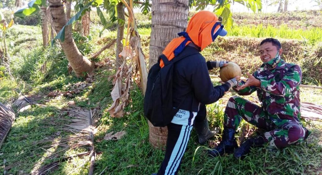 ”Setelah konsumsi air kelapa muda, kami merasakan stamina yang terkuras terasa kembali dan tubuh fit kembali,” uajar Serda Setiar, salah satu anggota Satgas TMMD Kodim Karanganyar .