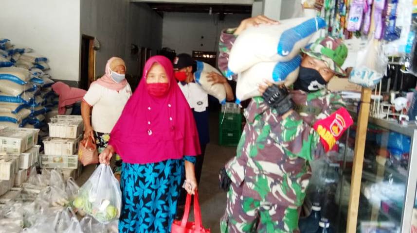 Saat mendampingi emak-emak belanja di toko kelontong, Serda Teguh, yang sehari-hari anggota Kodim 0727/Karanganyar itu dengan sigap mengangkat dua karung beras, dan sejumlah barang belanja lainnya.