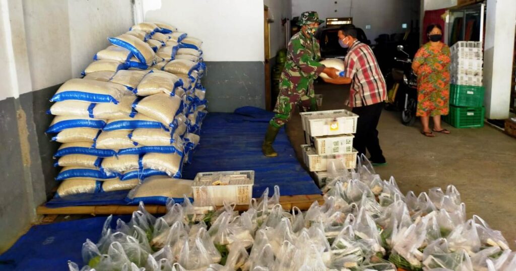 KORDANEWS – Anggota Satgas TMMD ke 109 Kodim 0727/Karanganyar, Sertu Budi Cahyono mendampingi Pemerintah Desa Jatiwarno Kecamatan Jatipuro, untuk mempercepat penyaluran sembako kepada warga yang terdampak ekonomi akibat pandemi Covid-19.