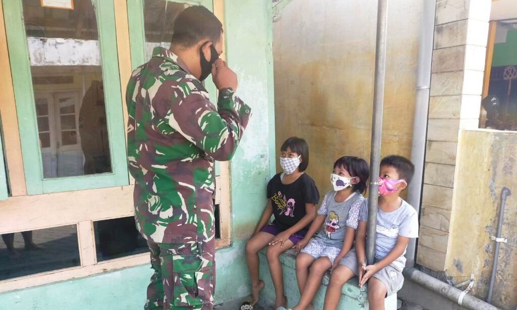 Salah satu Anggota Satgas TMMD ke -109 Serda Listiyono mengatakan memberitahu anak anak soal pemakaian masker ketika keluar rumah, harus dilakukan untuk membangun kesadaran dalam menjaga diri dari corona.