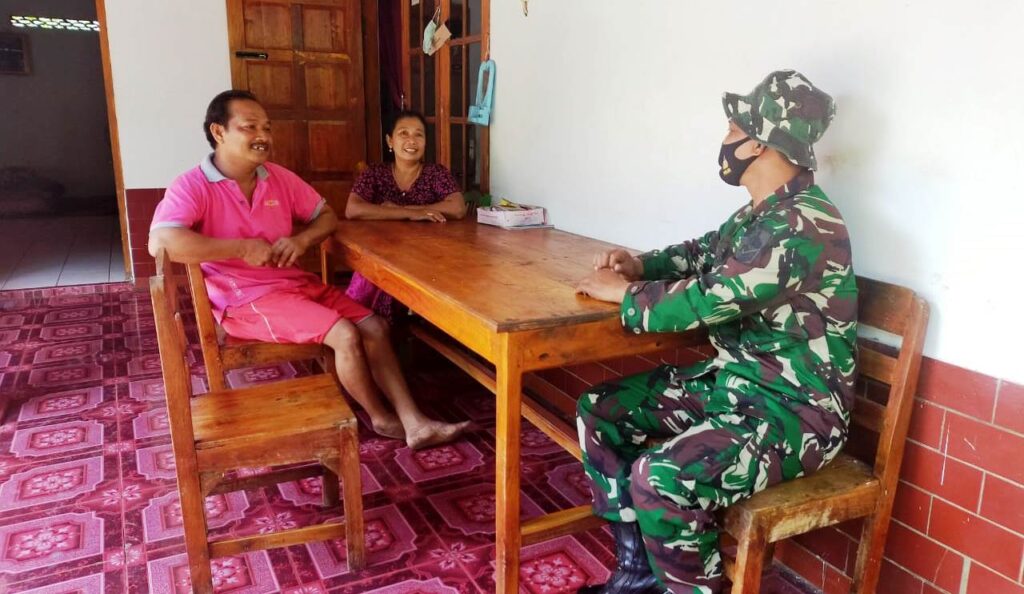 Itu terlihat saat Prada Lisna dan Pratu Amir anggota satgas TMMD melaksanakan anjangsana ke rumah Giyanto (40) warga Dusun Pucangsari, Desa Jatiwarno.