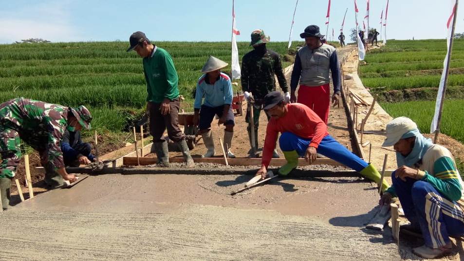 Danki Satgas TMMD 109 Kapten (Inf) Supardi, mengatakan satgas TMMD 109 bersama warga terus bahu membahu mengerjakan pengecoran jalan yang menghubungkan dua dusun, yaitu antara Dusun Sonosari dengan Dusun Trugo, Desa Jatiwarno Kecamatan Jatipuro.