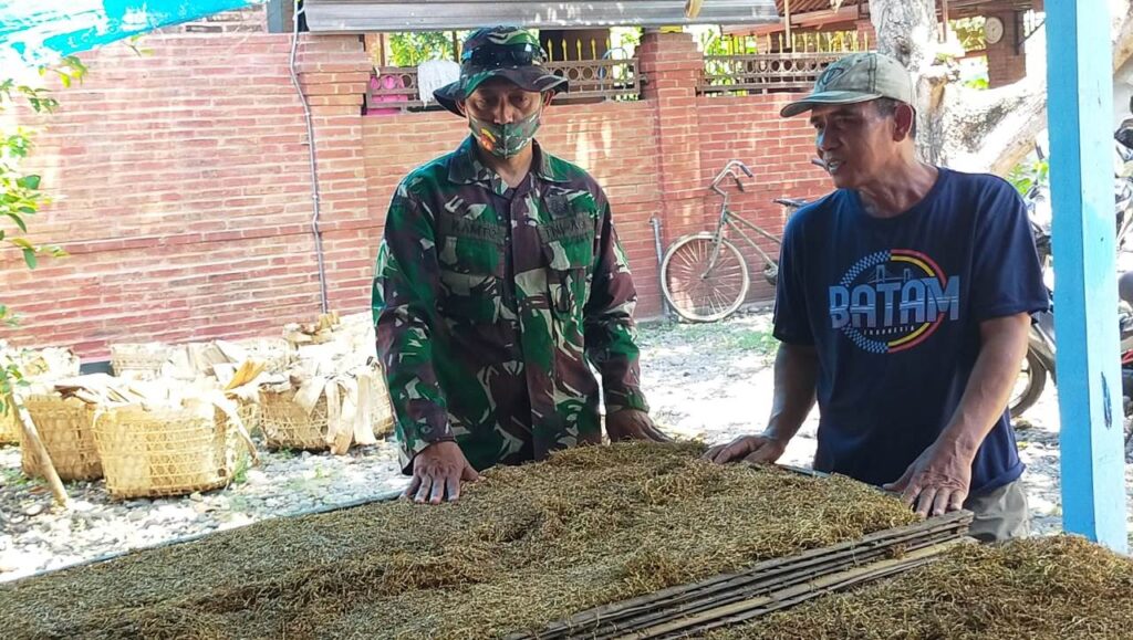Kasdim tampak berbincang – bincang sama petani tembakau, Haji Suhardi (45) dukuh Kacangan Lor ,Desa Sendang Kulon. Terlihat keakraban antara Kasdim dengan Suhardi yang merupakan petani tembakau.