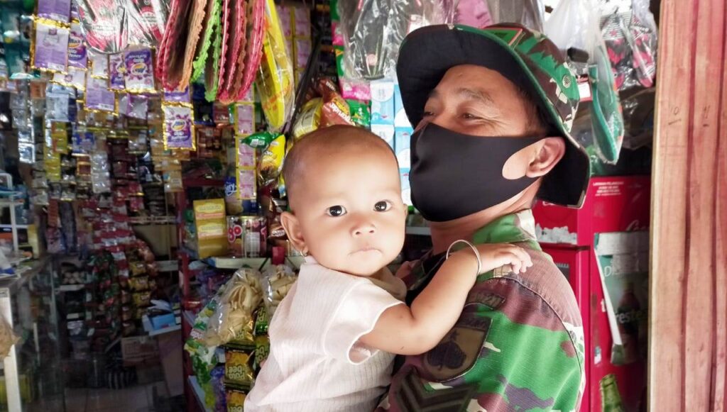 KORDANEWS – Di tengah-tengah melaksanakan tugas TMMD 109 tahun 2020 Kodim 0727/Karanganyar, hampir seluruh anggota Satgas TMMD yang meninggalkan keluarganya. Untuk melepas rindu terhadap keluarganya, Satgas TMMD ini gendong Balita saat istirahat di sebuah warung milik warga.