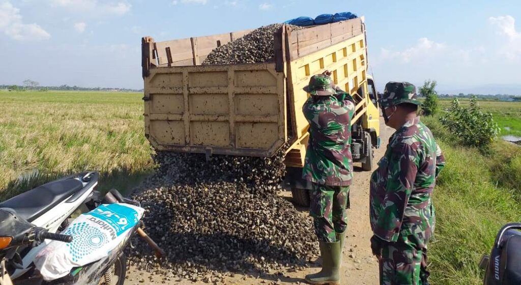 KORDANEWS – Pengedropan bahan batu split ke sasaran Tentara Manunggal Membangun Desa (TMMD) Reguler 109 Kodim Kendal di Desa Sendang kulon, Kecamatan Kangkung, Kabupaten Kendal, Jawa Tengah.