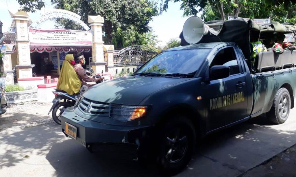 Antisipasi serta penanganan dan upaya pemutusan rantai penularan wabah Covid-19 di Kabupaten Kendal terus dimaksimalkan. Seperti yang terlihat di Desa Sendang Kulon Satgas TMMD Reguler Ke-109 Kodim 0715/Kendal Keliling menggunakan Kendaraan patroli untuk melakukan sosialisasi pemutusan rantai penyebaran Covid-19.