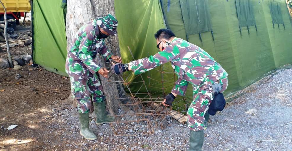 “telah kami siapkan 30 besi cakar ayam sebagai bahan dasar untuk pondasi jaringan lampu penerangan, pembangunan jaringan ini harus kuat permanen dan rapi penekanannya,”Ujar Kapten CPL Ngesti, selaku koordinator lapangan TMMD