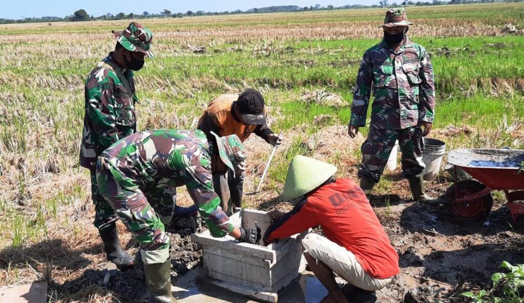 Anggota Satgas dan warga saling memberikan sumbangsihnya pembangunan pondasi tiang penerangan yang tentunya akan memberikan kenyamanan kepada masyarakat yang lewat di malam hari.