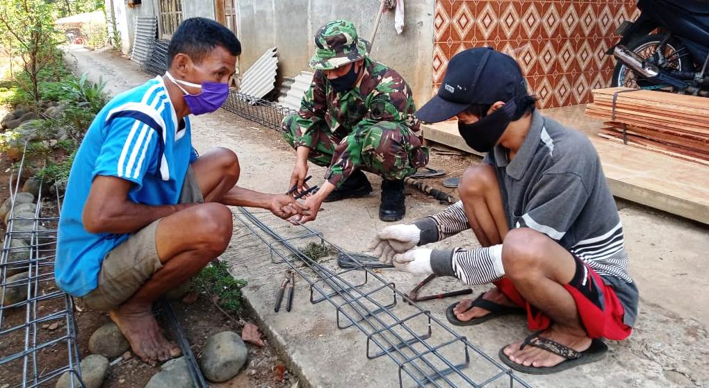 KORDANEWS – Anggota Satgas Tentara Manunggal Membangun Desa (TMMD) Reguler ke-109 tahun 2020 Kodim 0727/Karanganyar, di Desa Jatiwarno bersama dengan warga membuat begel slof untuk pondasi rumah tidak layak huni (RTLH).
