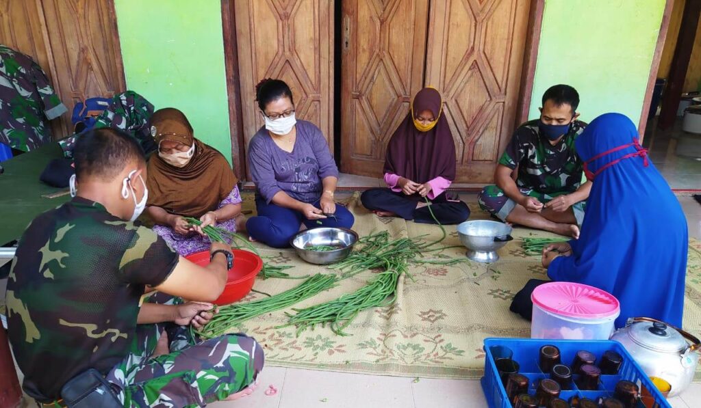 Ibu-ibu desa Jatiwarno Kecamatan Jatipuro Kabupaten Karanganyar saling bergotong royong untuk menyediakan logistik satgas TMMD dan warga yang melaksanakan pengerjaan jalan didesa mereka.