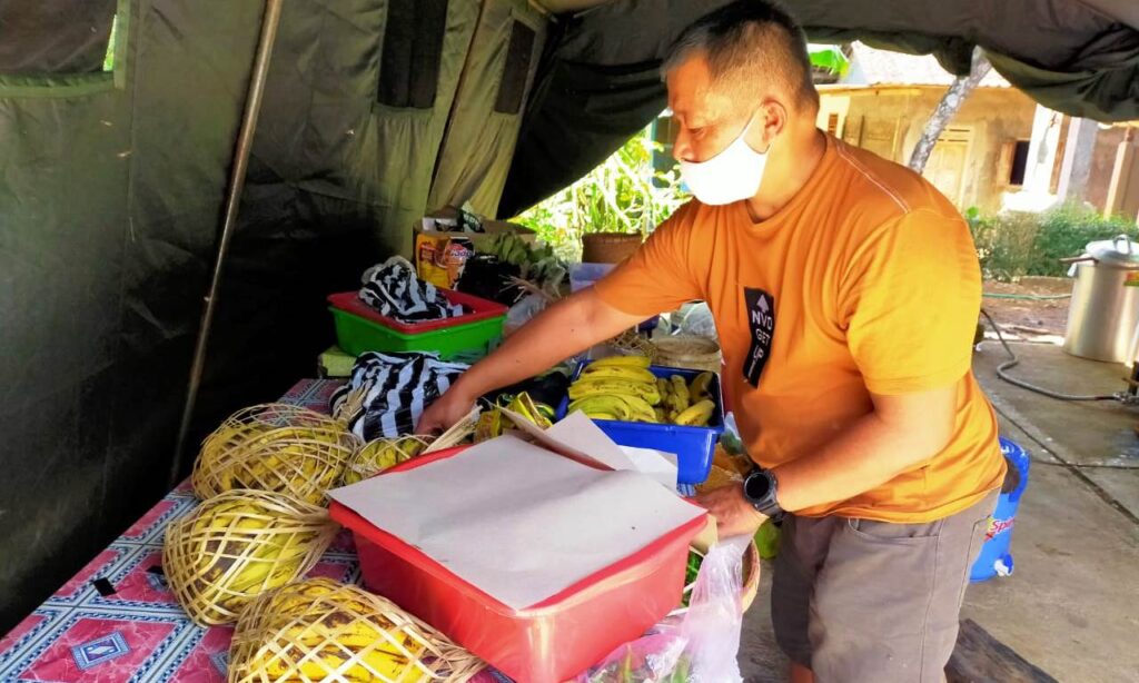 Satgas TMMD 109 yang berada di Dapur, Pelda Karmi Korlap Dapur bersemangat dalam melayani anggota satgas dalam hal konsumsi makan pagi ,siang dan sore.