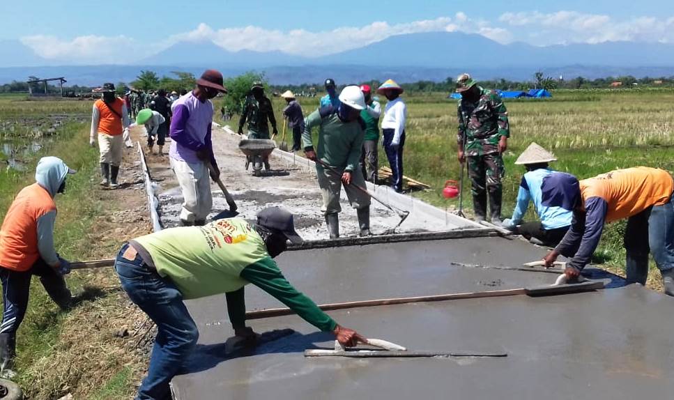 Semangat anggota TNI dan warga Desa Sendang kulon, Kecamatan Kangkung semakin meningkat, saat melihat perubahan jalan Desa yang semakin bagus, meski belum seluruhnya di selesaikan.