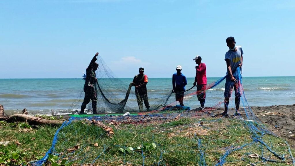 Satgas TMMD Bantu Nelayan Pasang Jaring