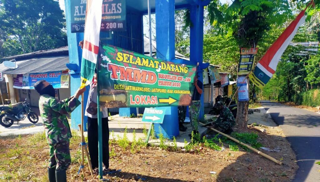 KORDANEWS – TNI anggota satgas TMMD Reguler ke -109/Kodim 0727/Karanganyar di Desa Jatiwarno, Kecamatan Jatipuro, Kabupaten Karanganyar, Jawa Tengah, terus perbanyak papan petunjuk arah ke lokasi TMMD.