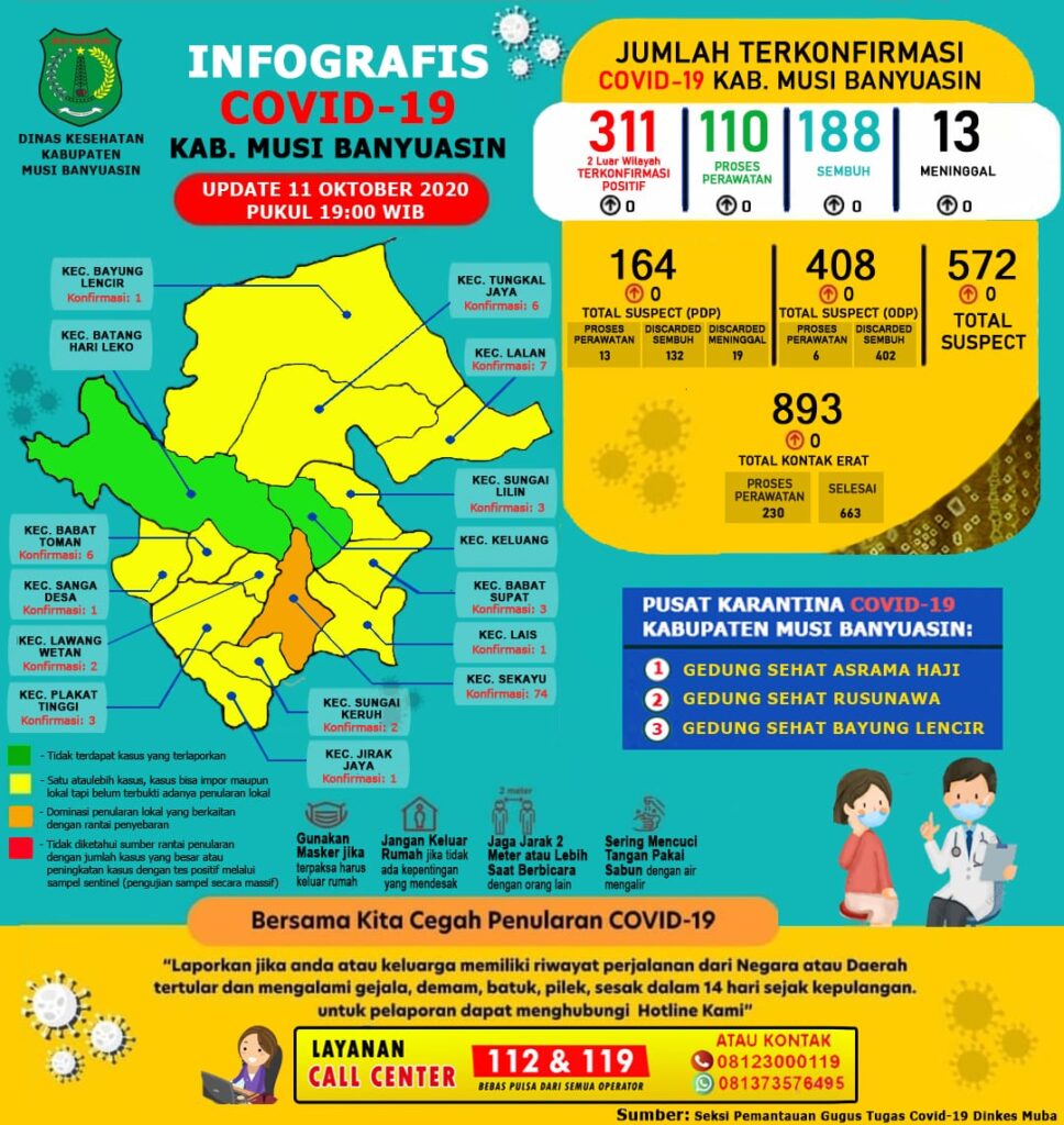 KORDANEWS – Gugus Tugas Penanganan Covid-19 Muba, Minggu (11/10/2020) mengkonfirmasi nihil kasus konfirmasi.