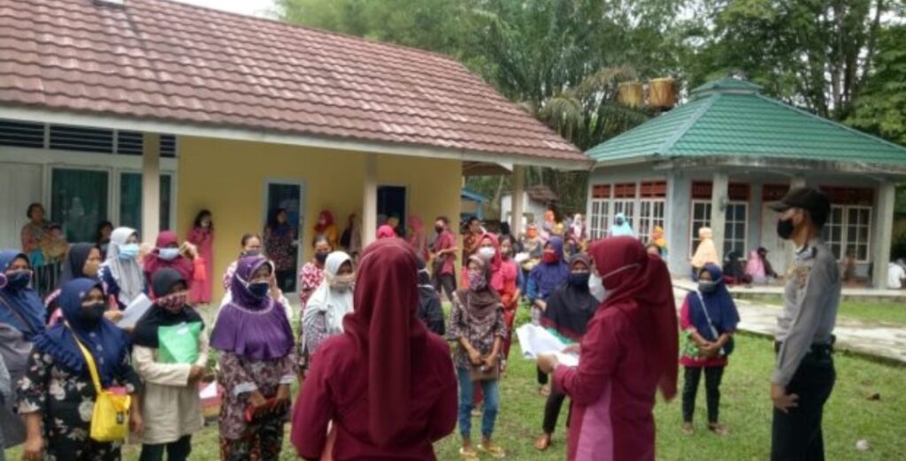 Kedatangan ratusan warga tersebut ternyata menerima penyaluran Sembako seberat 45 kilo gram Program Keluarga Harapan (PKH) dampak Covid-19.