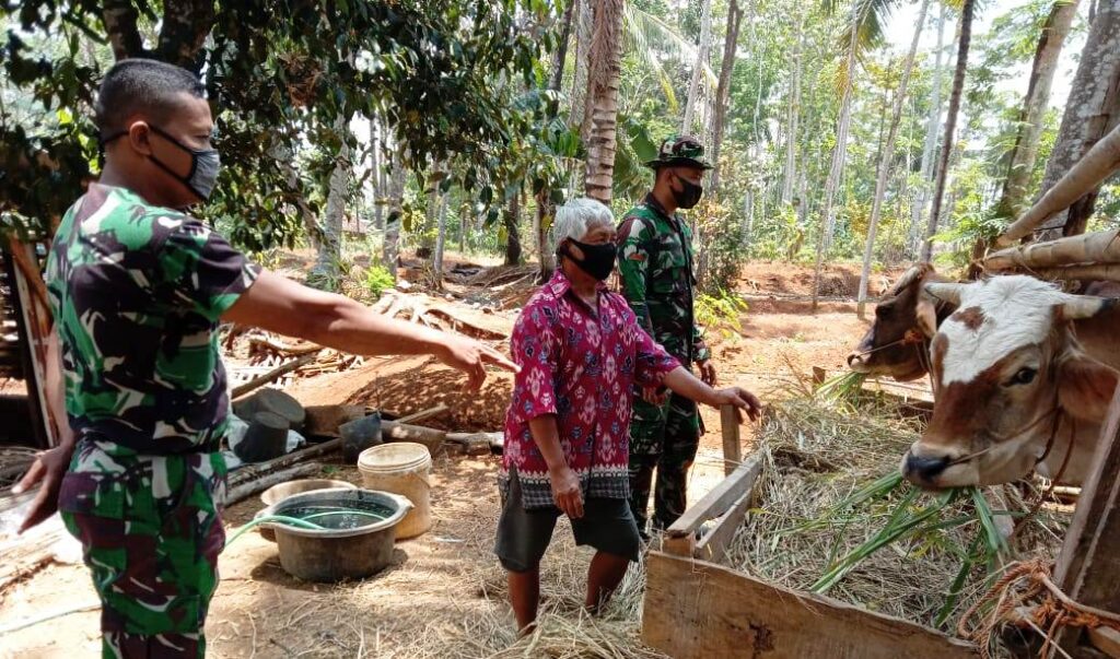 Demi mendapat ilmu tentang cara beternak Sapi, Sertu Sri Sudianto dan Prada Rizky menyambangi rumah Giyatno (65) tahun warga dusun Pucangsari yang mengaku sudah hampir 20 tahun lebih menggeluti usaha ternak Sapi.