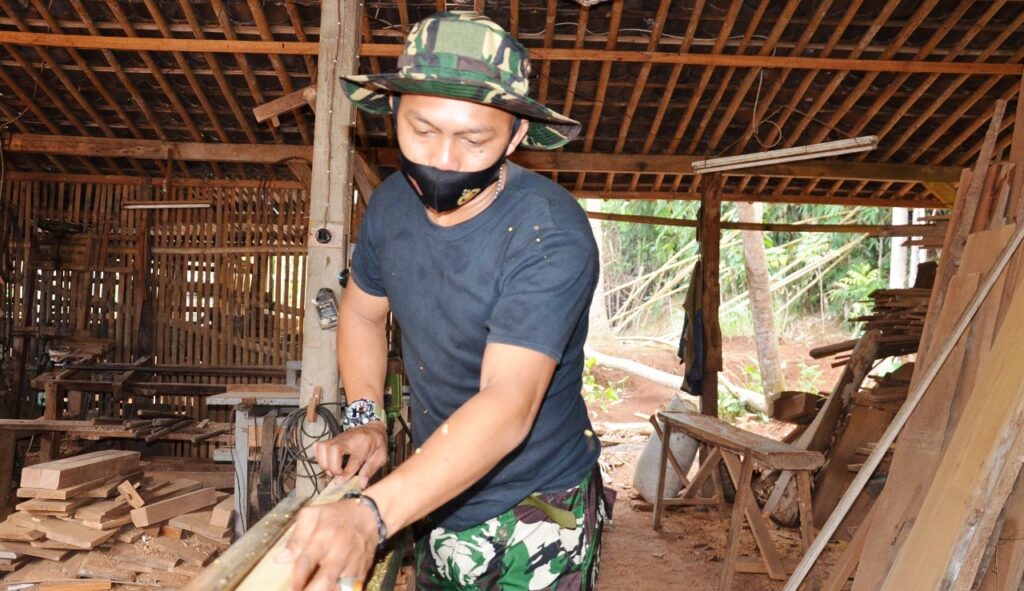 Seperti yang dilakukan Praka Tri salah satu anggota Satgas TMMD ke-109 Kodim 0727/Karanganyar yang juga membantu pengerjaan kusen untuk RTLH Desa Jatiwarno, Kec Jatipuro.