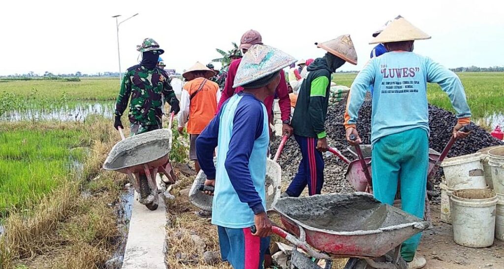 KORDANEWS – Sengatan matahari siang yang sangat panas, ditambah suara yang keluar dari mesin molen menambah suasana menjadi bising di lokasi betonisasi jalan.