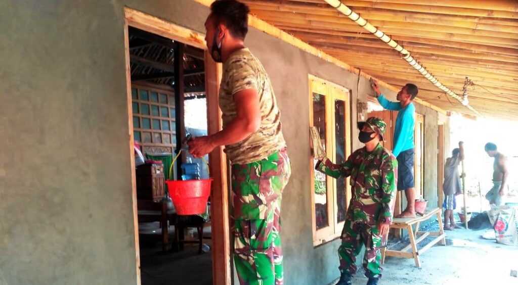 KORDANEWS – Dalam upaya mengejar target waktu penyelesaian program sasaran utama TNI Manunggal Membangun Desa (TMMD) Reguler ke 109 Kodim 0727 /Karanganyar di Desa Jatiwarno Kecamatan Jatipuro Kabupaten Karanganyar. Satgas TMMD dibantu warga bersama-sama mengerjakan penyelesaian plesteran dinding rumah Mbah Sugiyo