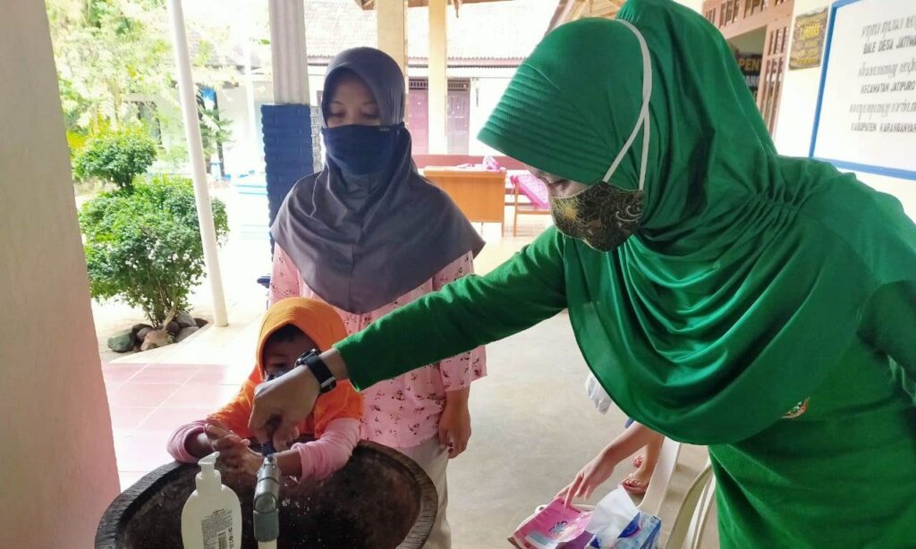 Dalam kesempatan tersebut, Ketua Persit ranting 15 Koramil 14/Jatipuro Ny. Suratman isteri Danramil, telah memberi arahan kepada anak-anak dan orang tua sebelum masuk ruangan untuk menerapkan tiga M.