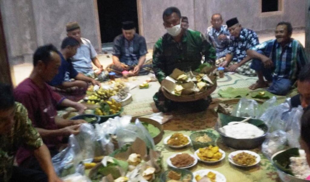KORDANEWS – Anggota Satgas TNI Manunggal Membangun Desa (TMMD) Reguler 109 Kodim 0727/Karanganyar, di Desa Jatiwarno, Kecamatan Jatipuro, Kabupaten Karanganyar, menghadiri acara slup-slupan atau selamatan menempati rumah baru.