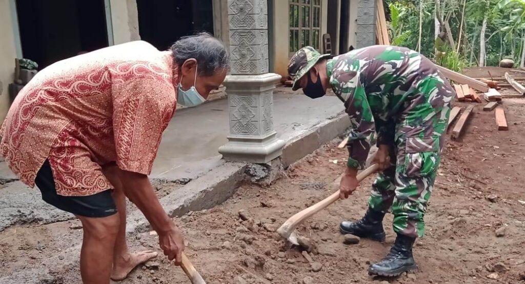 KORDANEWS – Anggota Satgas TNI Manunggal Membangun Desa (TMMD) Reguler 109 Kodim 0727/Karanganyar, di Desa Jatiwarno, Kecamatan Jatipuro, Kabupaten Karanganyar, bersama dengan warga mulai meratakan sisa-sisa galian rumah tidak layak huni (RTLH).