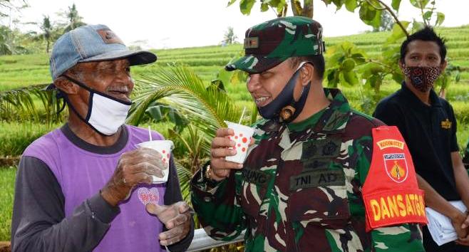 Di lokasi TMMD Reguler ke 109 Dansatgas itu terlihat penuh keakraban dengan personel dan warga, dengan memberikan minuman susu murni warga yang ikut membantu pengerjaan pembangunan pengecoran jalan penghubung antara dusun Sonosari dan dusun Trugo. Mereka minum susu secara bersama-sama dengan masyarakat.