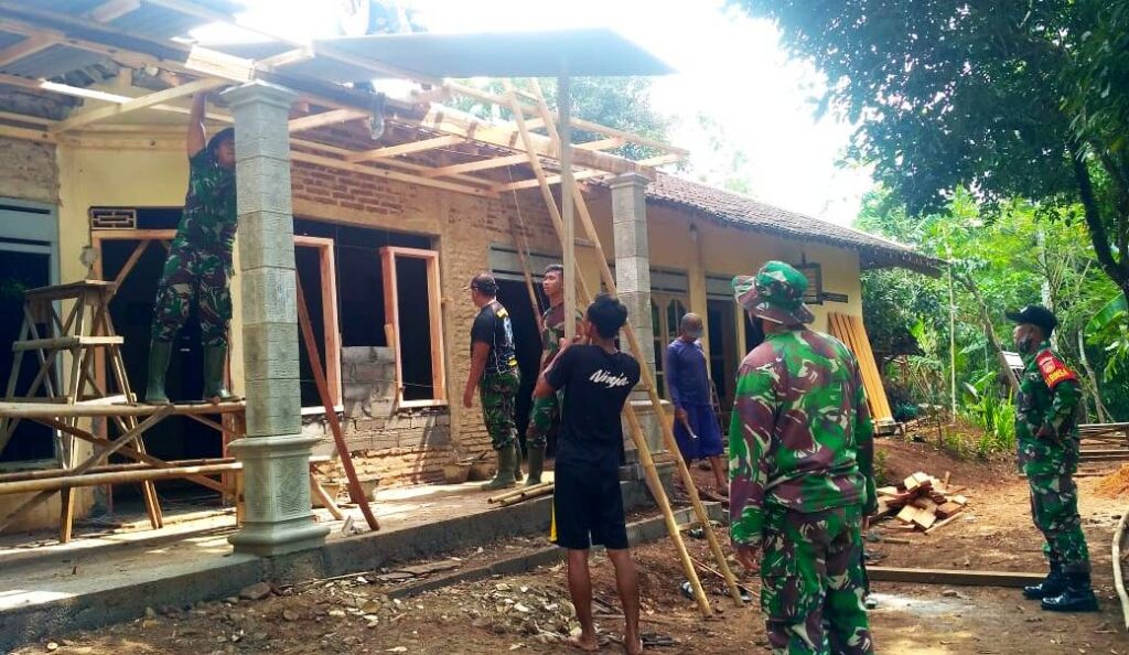 Hal itu terlihat saat Sertu Prayitno, Anggota Satgas TMMD bersama dengan warga melakukan pemasangan asbes untuk teras RTLH milik Suparno, warga Dusun Trugo, Desa Jatiwarno Kecamatan Jatipuro, Kabupaten Karanganyar.