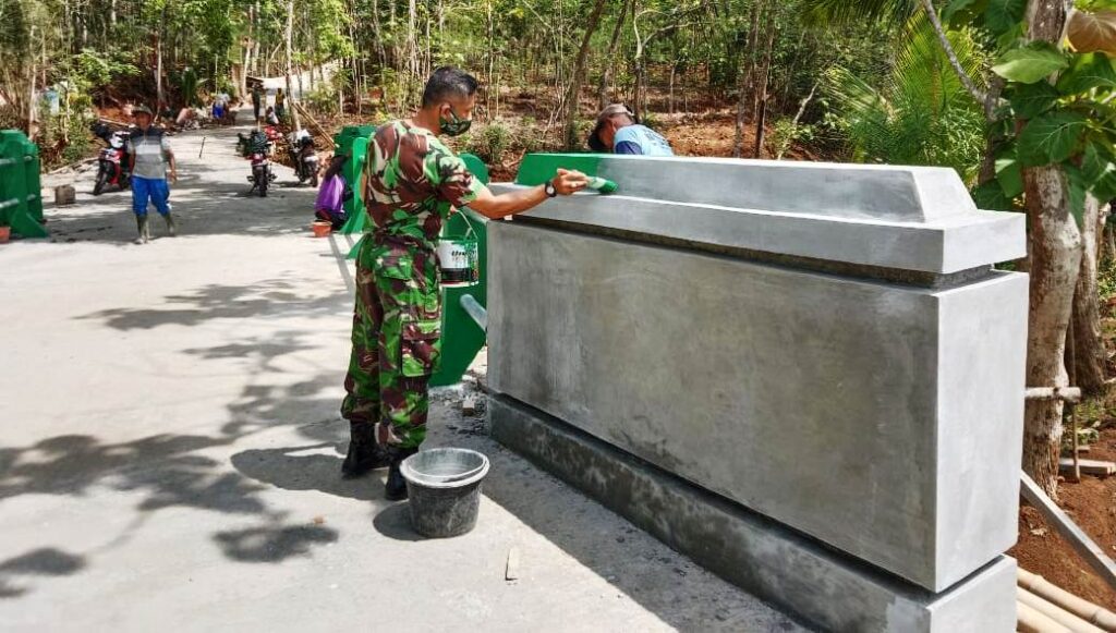 KORDANEWS – Satgas TNI Manunggal Membangun Desa (TMMD) reguler ke-109 TA 2020, Kodim 0727/Karanganyar di Desa Jatiwarno, Kecamatan Jatipuro, Kabupaten Karanganyar, mulai mengerjakan finishing berupa pengecatan pada pembangunan jembatan satu.