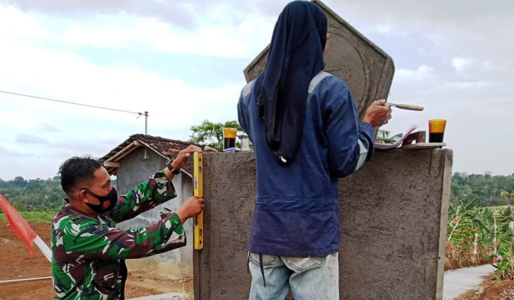 KORDANEWS – Satgas TNI Manunggal Membangun Desa (TMMD) reguler ke-109 TA 2020, Kodim 0727/Karanganyar, mulai mengerjakan finishing pembangunan tugu prasasti TMMD Kodim 0727 /Karanganyar di jalan penghubung antara dusun Trugo dan Dusun Sonosari Desa Jatiwarno Kecamatan Jatipuro.