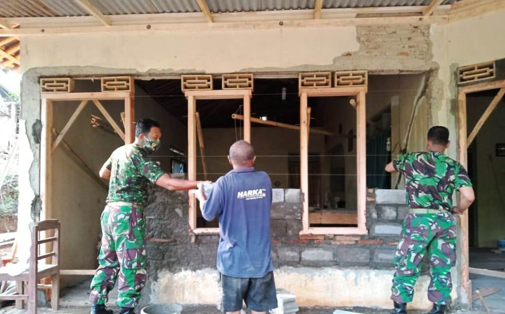 “Kegiatan RTLH TNI dan Warga sedang melakukan pemasangan batako satu demi satu selanjutnya apabila sudah terpasang akan dilanjutkan dengan pemasangan kaca kusen jendela maupun pintu,“ ucap Sertu Untung anggota Satgas TMMD 109