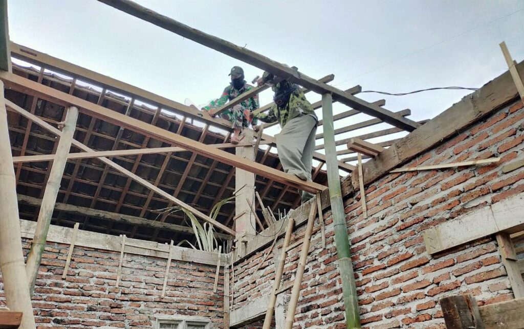 Seperti halnya di pengerjaan perehaban Rumah Tidak Layak Huni (RTLH) milik ibu Ulil, warga Desa Sendang Kulon, salah satu warga yang mendapat jatah rehab RTLH dalam program TMMD Reguler 108 Kodim 0715/Kendal, TNI Satgas dan warga terus kebut pemasangan kayu usuk di rumah itu .