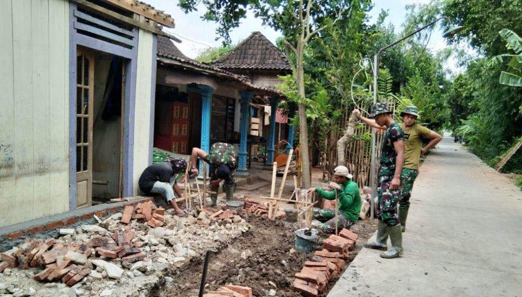 Danki Satgas TMMD Lettu Inf Sudiyono mengatakan personel Satgas bersama masyarakat bahu membahu bekerja menuntaskan rehab RTLH milik Ibu Hanik(60) warga Dusun Ngampel Sari Rt 03/Rw 03 Desa Sendang Kulon.