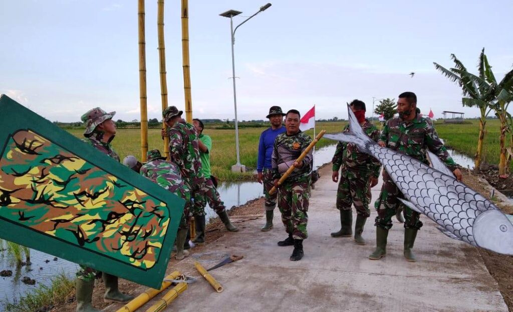 KORDANEWS – Sejumlah warga dan Satgas TMMD semangat lembur pengecatan gapura yang selesai didirikan dengan warna dominan hijau loreng dalam rangka menyambut penutupan TMMD reguler ke-109 di Desa Sendang kulon Kecamatan Kangkung, Kabupaten Kendal, di jalan baru produk TMMD Reg 109 Kodim 0715/Kendal.