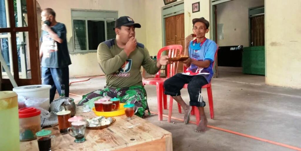 hal itu terlihat saat Pratu Bagus, sedang silaturahmi dengan warga Dusun Trugo seusai bekerja di lokasi sasaran fisik rehab rumah tidak layak huni (RTLH) milik Suparno.