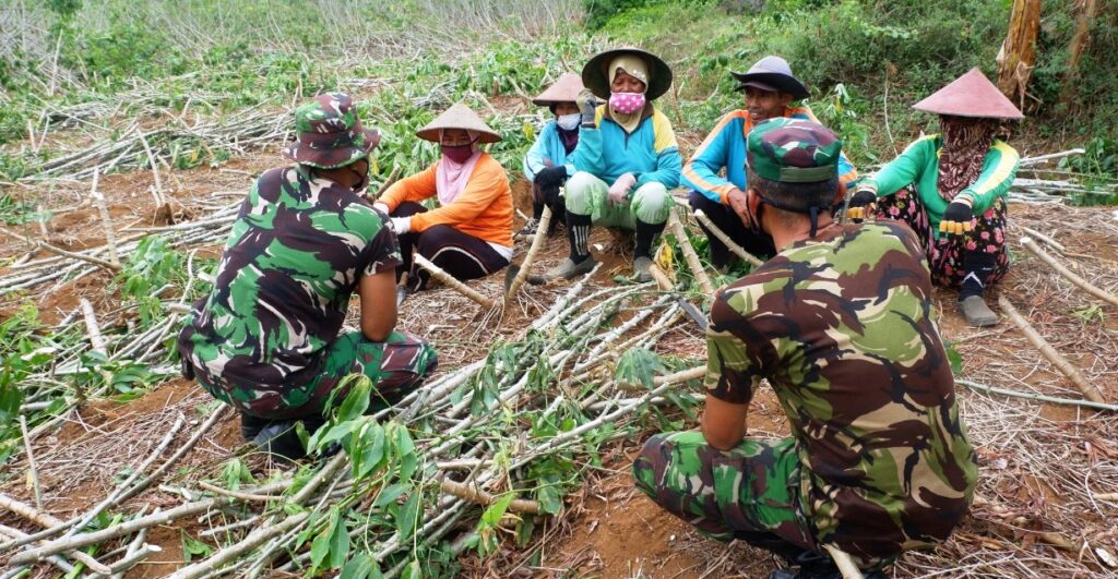 Hal itu seperti yang dilakukan oleh, Sertu Sri Sudianto, Anggota Satgas TMMD Reguler Ke -109 Kodim 0727/Karanganyar, bersama dengan warga terlihat ngobrol santai dengan suasana penuh keakraban di kebun Singkong milik Suharno, warga Dusun Trugo, Desa Jatiwarno.