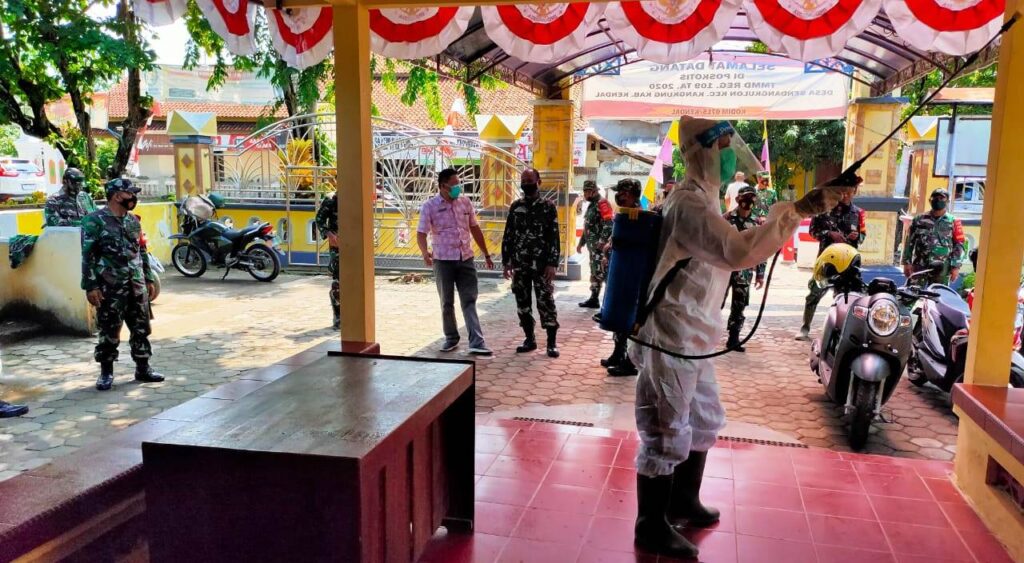 KORDANEWS – Setelah dijadikan tempat Poskotis selama satu bulan oleh Satgas TMMD Reguler 109 Kodim 0715 Kendal, pihak Balai desa Sendang Kulon, Kecamatan Kangkung, Kabupaten Kendal, Jawa Tengah, melakukan penyemprotan disinfektan di lingkungan kantor Desa setempat.